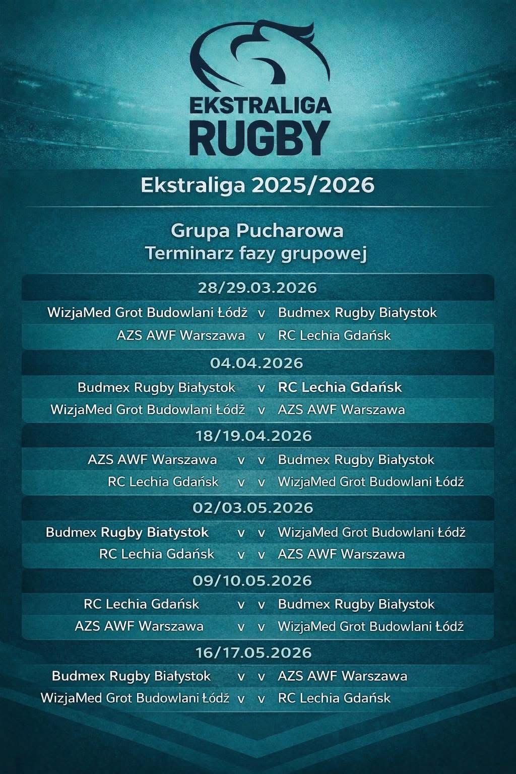 Kalendarz meczów Ekstraligi Rugby – Grupa Pucharowa.